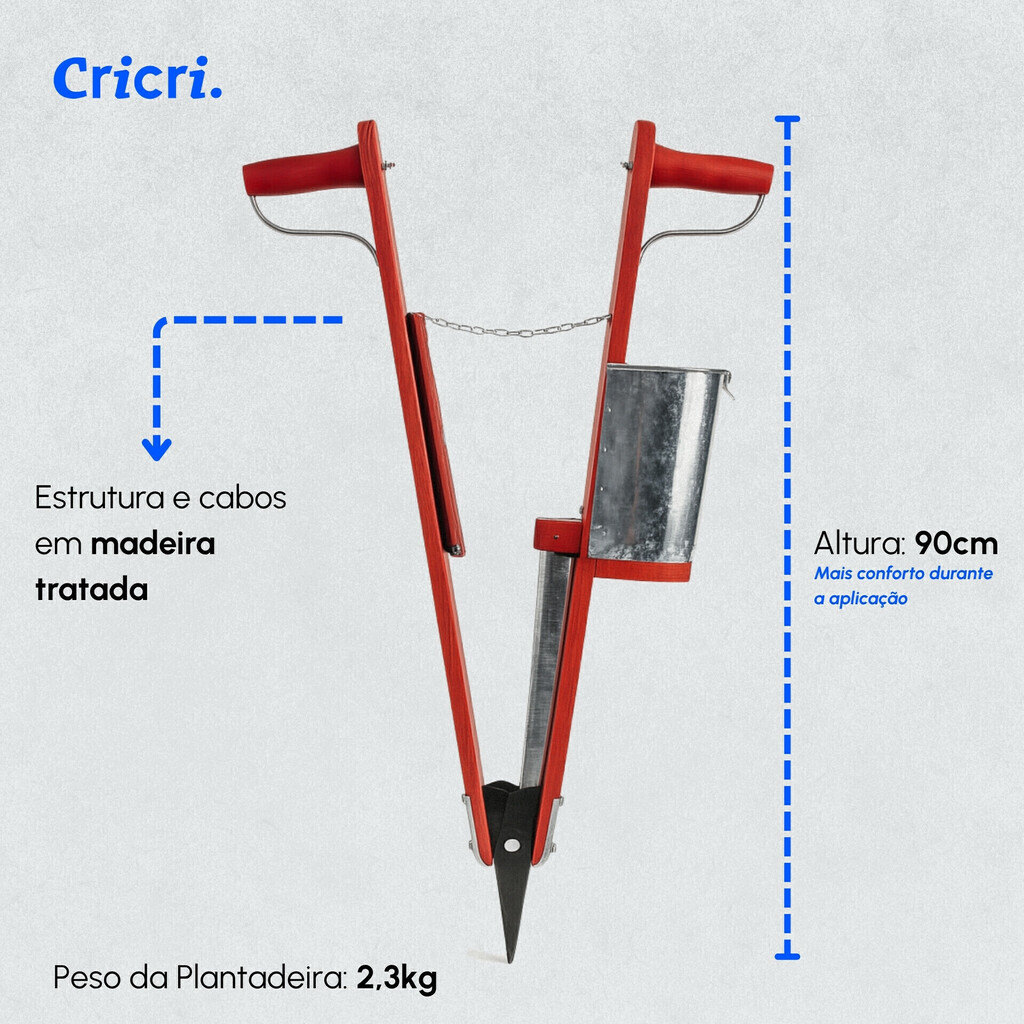 Uso individual > Ideal para quem planta sozinho, sem necessidade de trator ou tração animal.