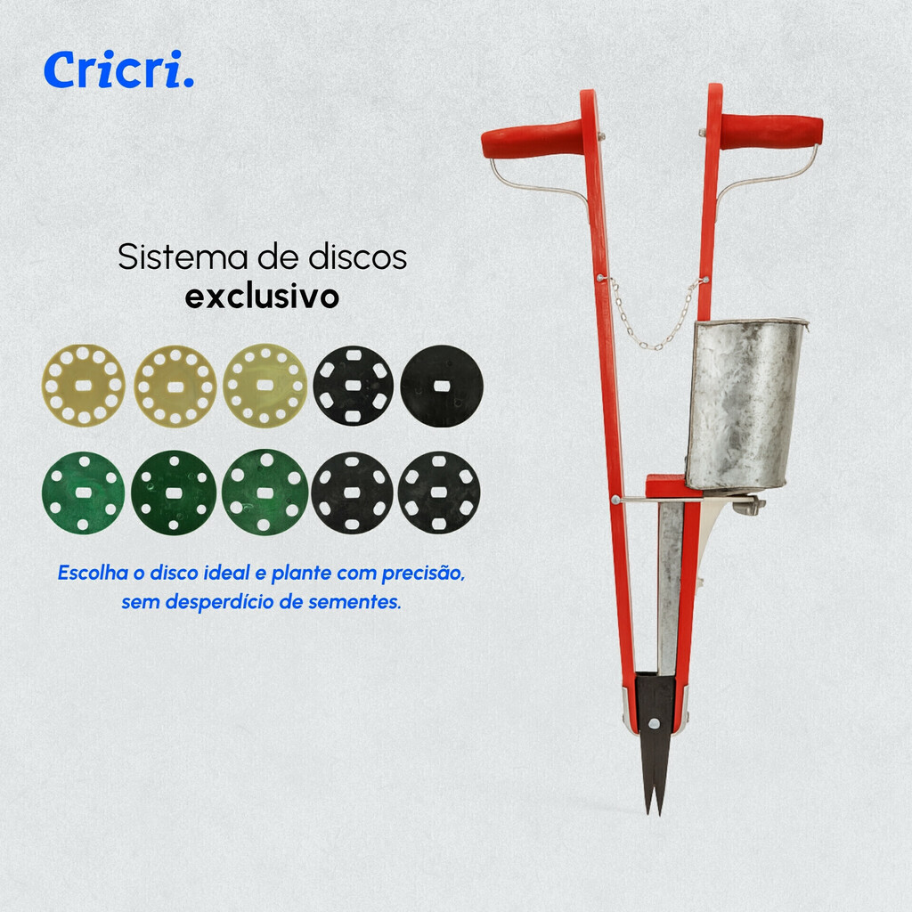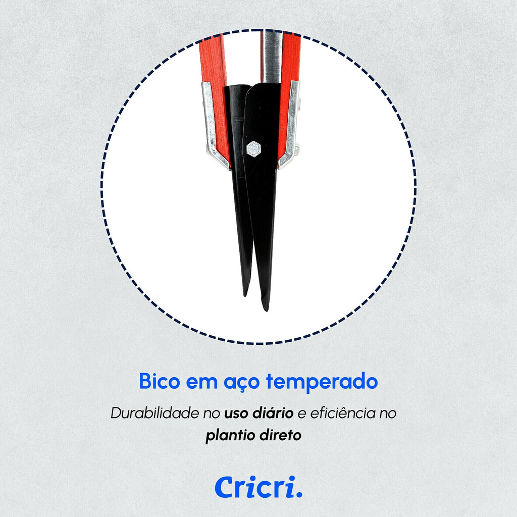 Seu bico fino foi feito especialmente para agricultores que plantam diretamente em solo duro e não gradeado. Acompanha 10 discos para diferentes tipos e tamanhos de sementes sendo grandes ou pequenas.