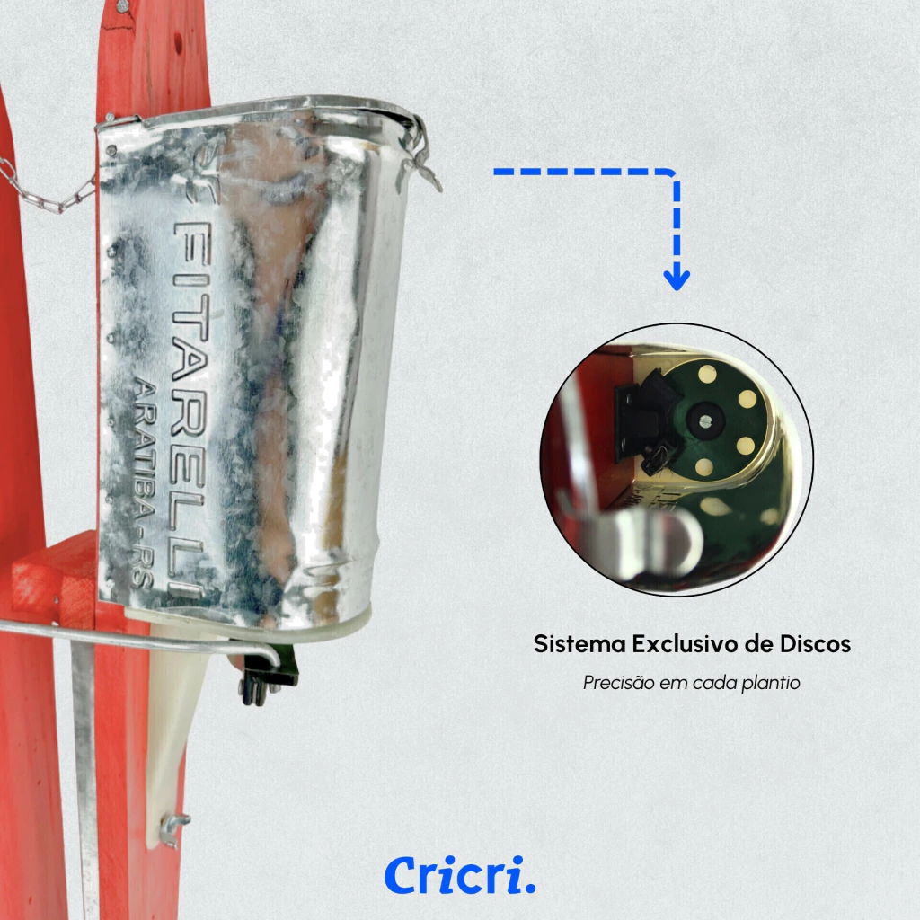 Ao contrário das plantadeiras mais simples, o modelo Fitarelli conta com um sistema de discos que podem ser trocados, assim oferecendo mais variedades de plantio e controle sobre a quantidade de sementes. Isso reduz falhas comuns como queda excessiva ou ausência de grãos em determinadas covas, problema recorrente em modelos convencionais.