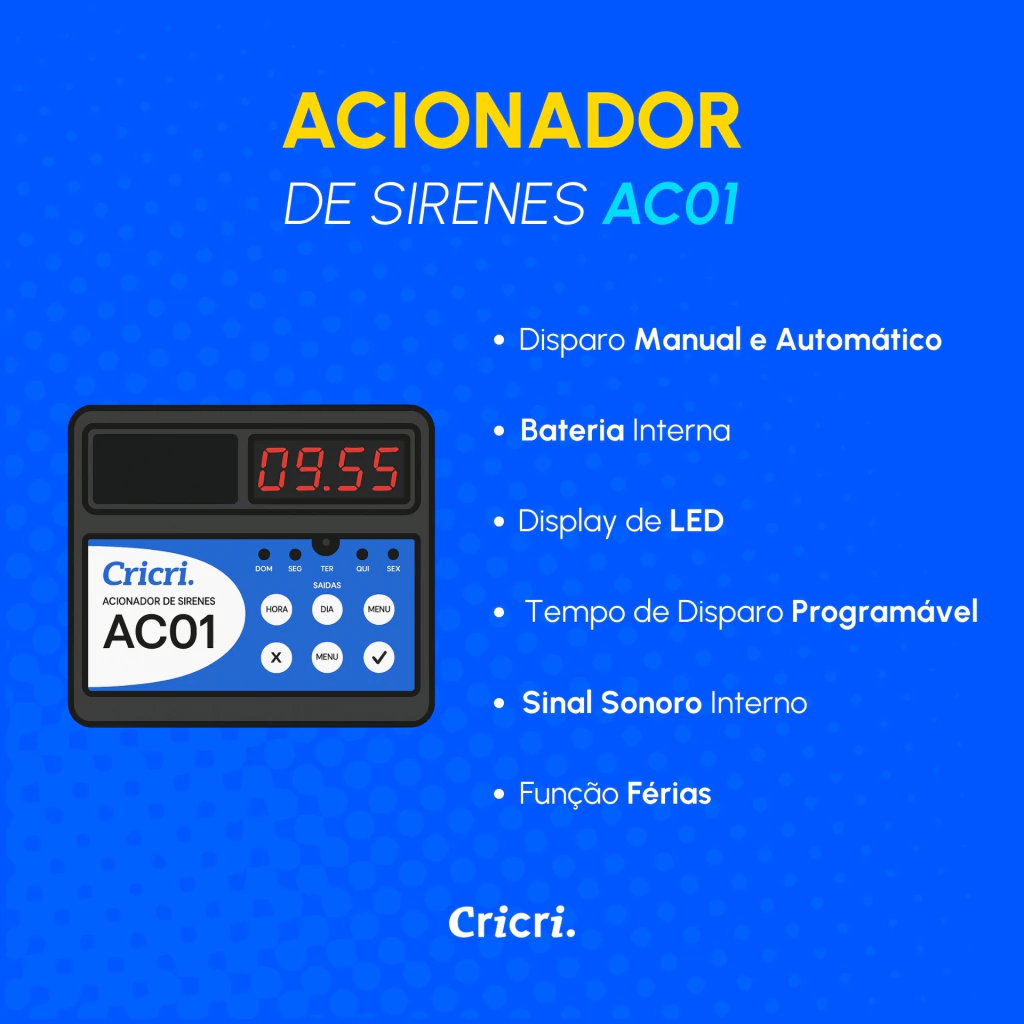 Organize os horários da sua escola, empresa ou refeitório com essa solução completa da CriCri. As sirenes são acionadas automaticamente nos dias e horários programados, sem necessidade de operador. Ideal para quem precisa manter pontualidade e sinalização sonora eficiente.